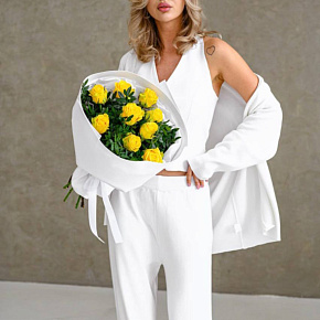 Вам бесплатно помогут флористы: предложат лучшие хиты, подберут разные по составу экзотические растения с высокими стеблями и зелень, что приятно дополнит букеты из роз и из других цветков. Не забывайте, что девушки любят сюрпризы, конфеты, мягкие игрушки. Мы их добавим к заказу по вашей просьбе. К букету можно приложить коробочку с ожерельем, сережками или кольцом. Такой подарок вызовет восторг.