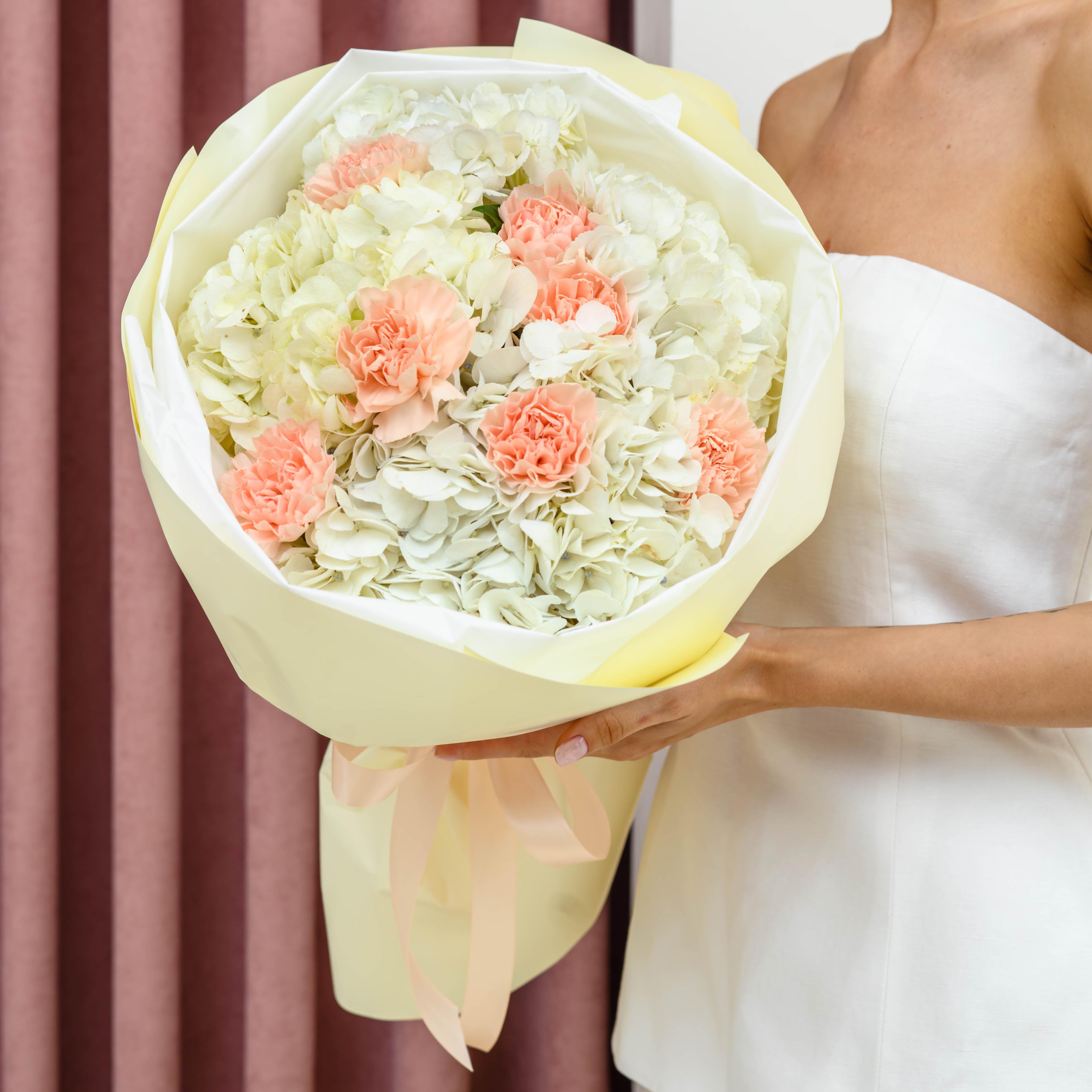 Букет из гортензии и диантуса "Асти"