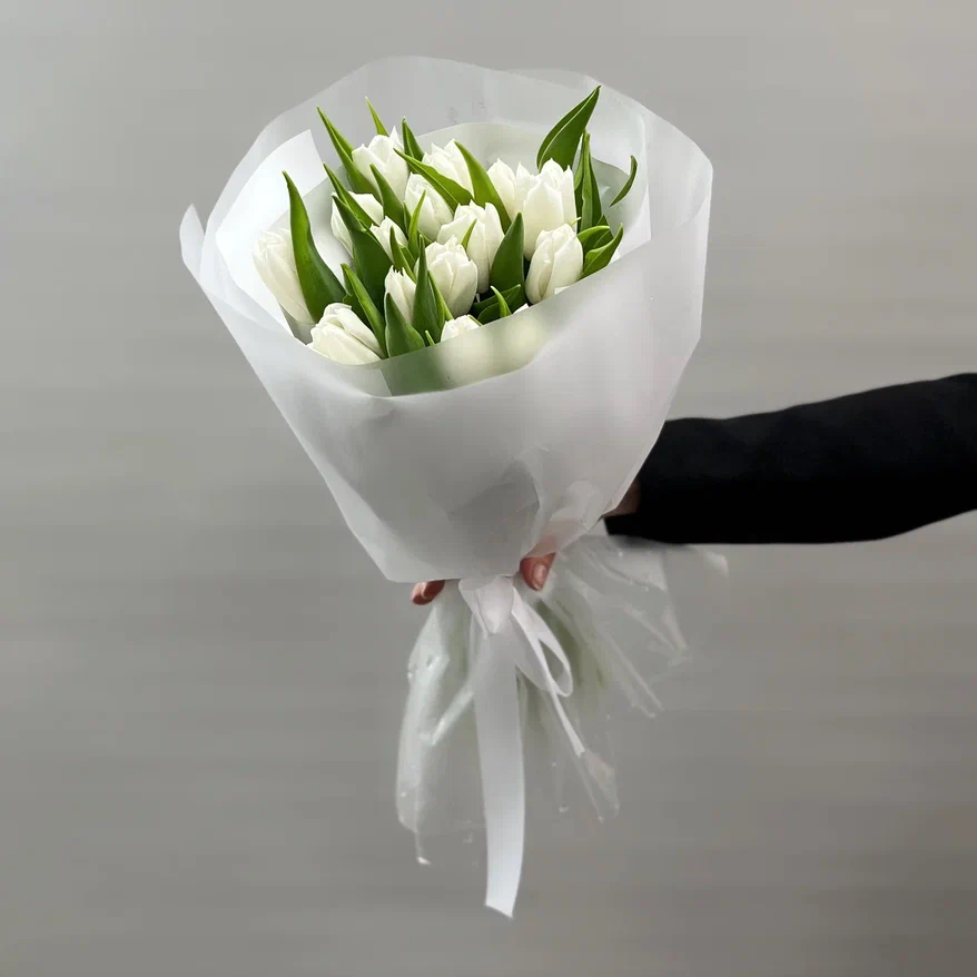 Букет из 15 белых тюльпанов