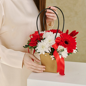 Гербера – «самодостаточный» цветок и часто используется для составления монобукета. Но неплохо он выглядит в сочетании с хризантемами, розами, ирисами.