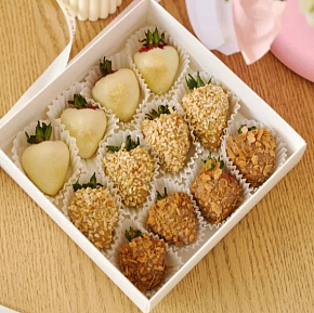 Нежный букет из сочного клубничного бельгийского шоколада в сочетании с райским кокосом